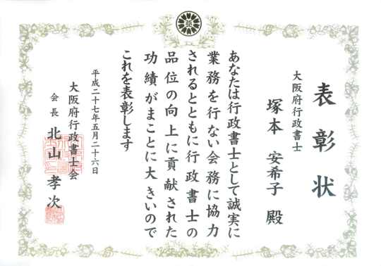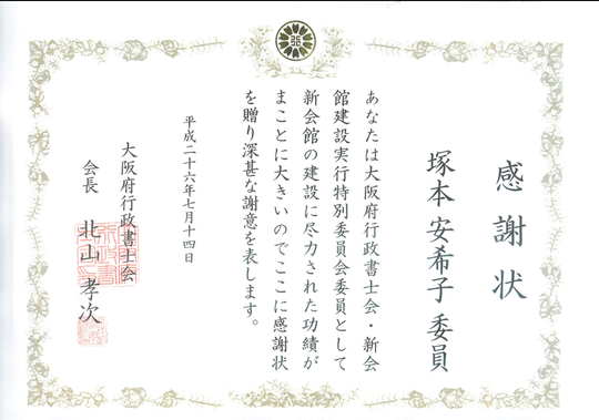 | 行政書士 | 塚本 安希子(特定行政書士) |